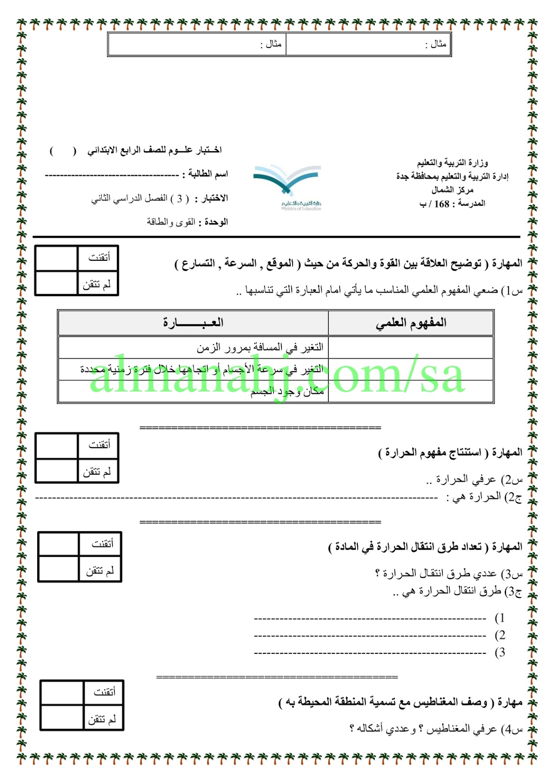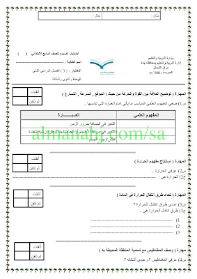أنت هنا: موقع المناهجالمناهج السعودية الصف الرابع علوم الفصل الثاني اختبارات