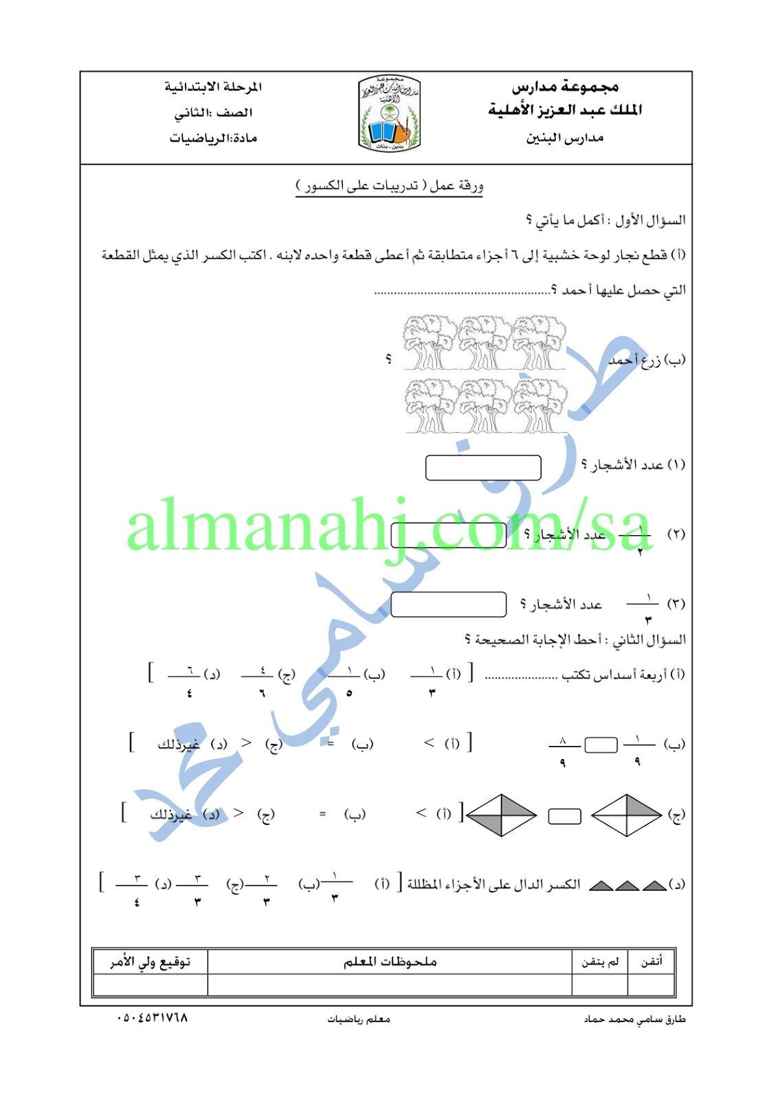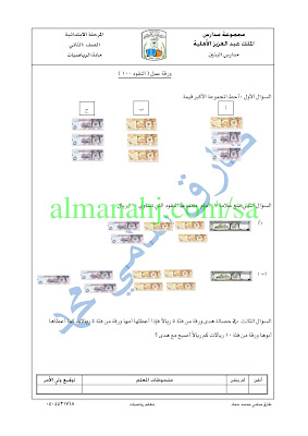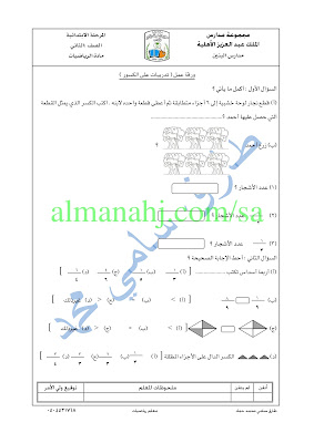 2. الصف الثالث, رياضيات, أوراق عمل الفصل الأول 1447ه