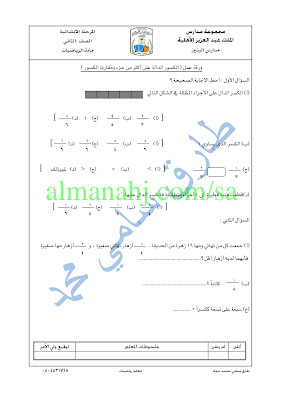 3. الصف الخامس, رياضيات, أوراق عمل كامل مقرر الفصل الأول
