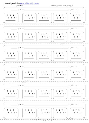 تم إيجاد الملف: ورقة عمل طرح الاعداد