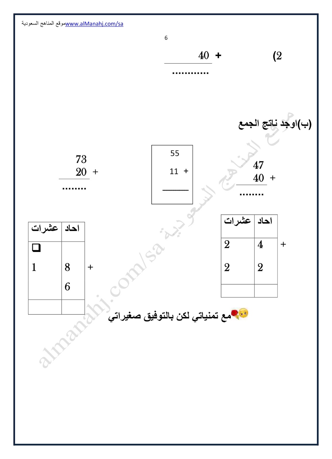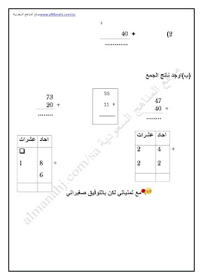 8. ورقة عمل درس طرح عدد مكون من رقم واحد و من رقمين