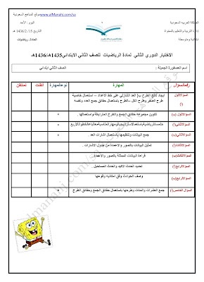إليكم الإختبار الدوري الثاني للصف الثاني الابتدائي في مادة الرياضيات وفق المنهاج السعودي