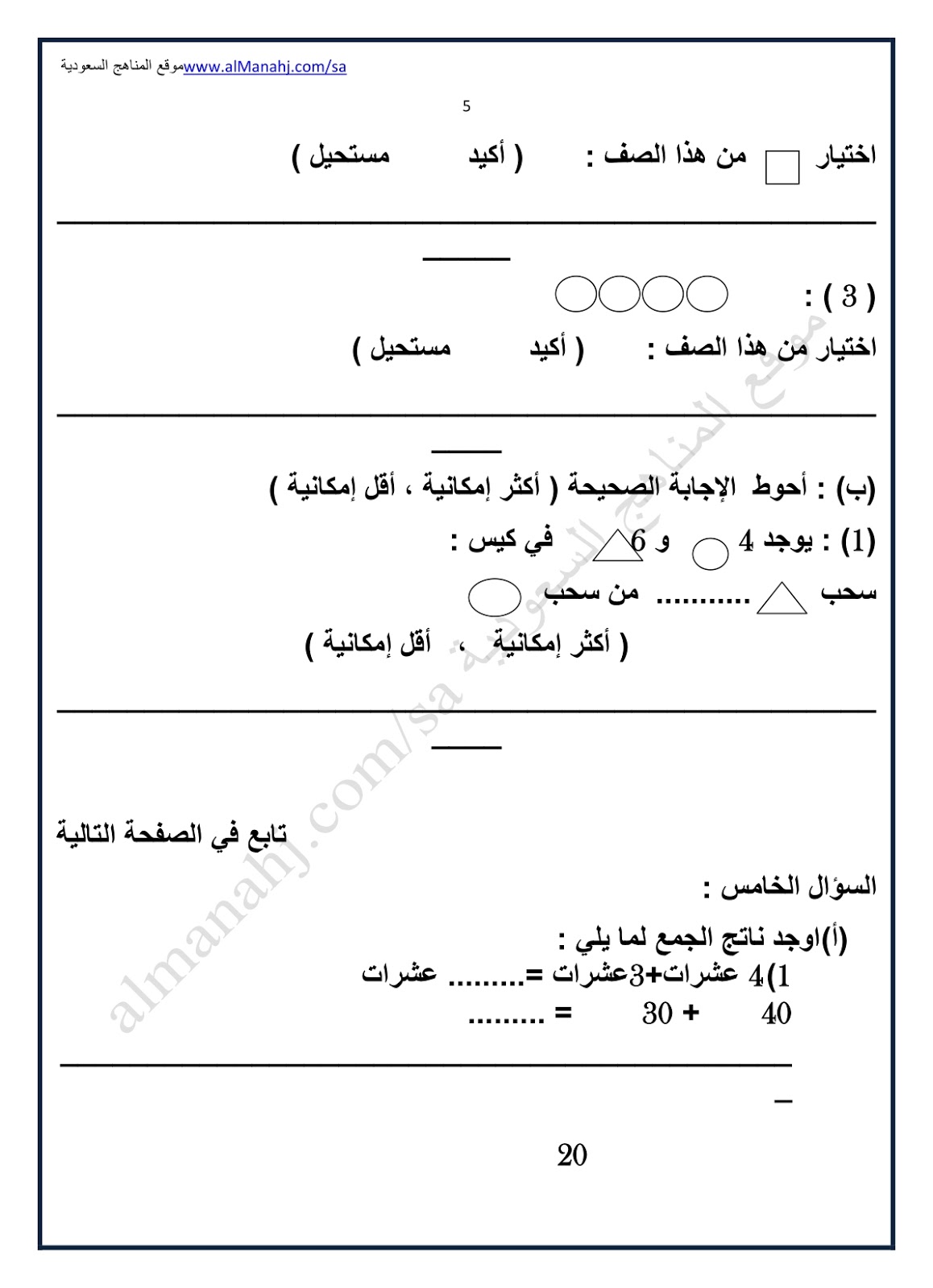 5. اختبار منتصف الفصل الدور الأول مع اختبار تجريبي للفترة الثانية وأسئلة تقييم فصول المنهج