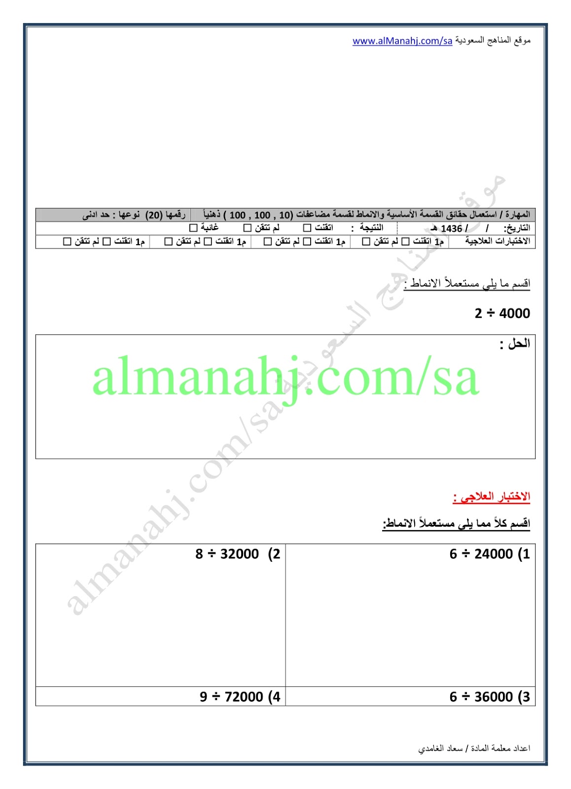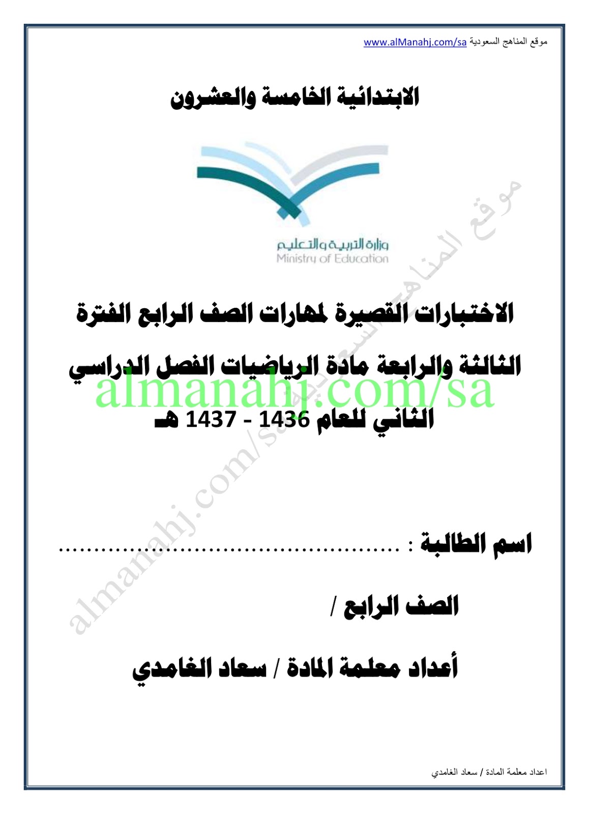 6. الصف السادس, الاختبارات, نموذج الإجابة على مسابقة ماهرون الاختبار المحاكي للاختبارات الوطنية نافس في منطقة جازان