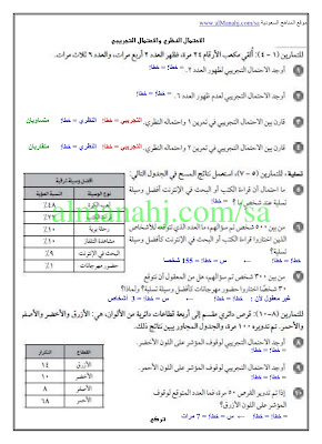 حل كتاب النشاط لدرس الاحتمال النظري و الاحتمال التجريبي في مادة الرياضيات للصف الأول المتوسط وفق المنهج السعودي