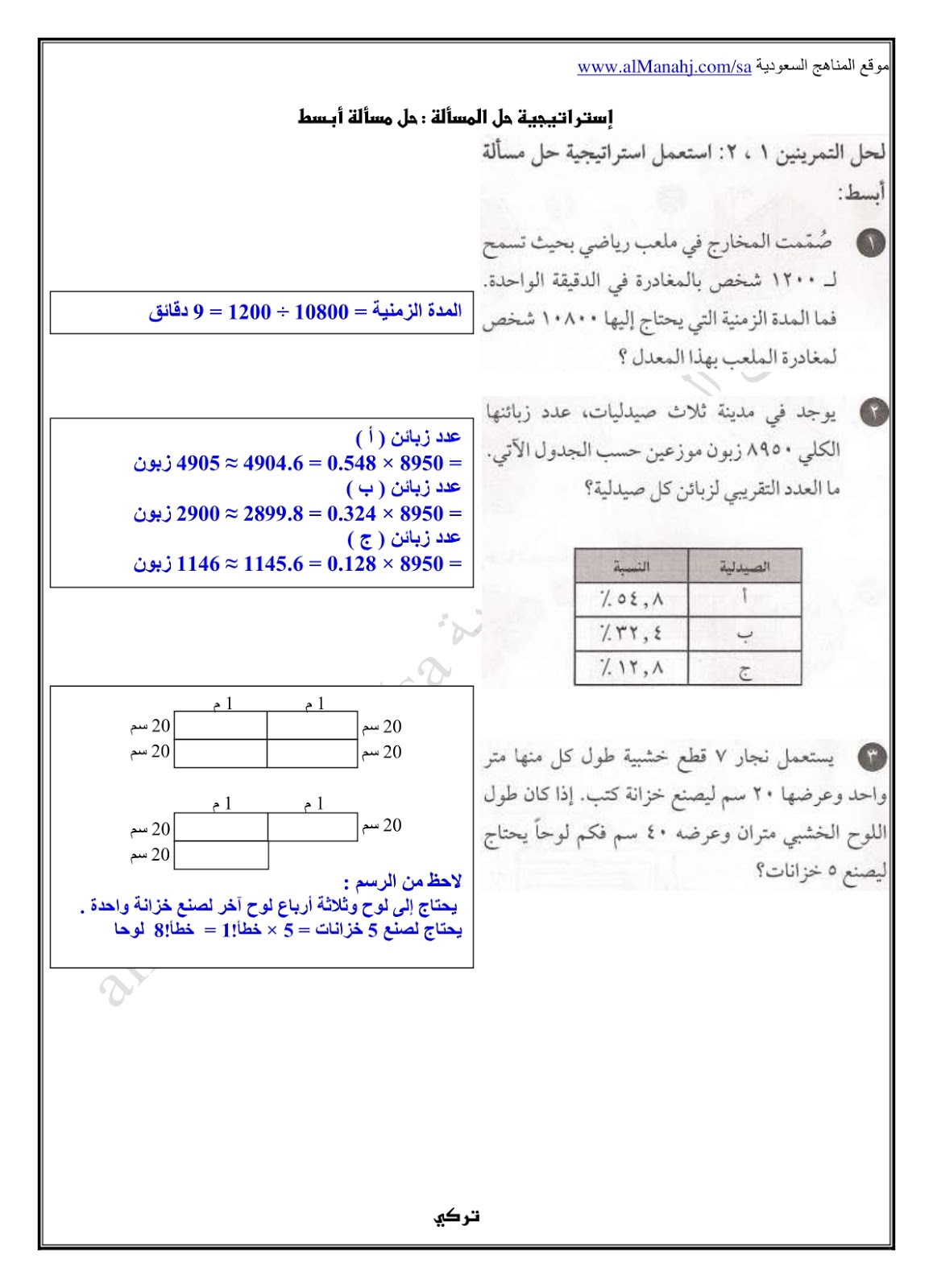 حل كتاب النشاط لدرس إستراتيجية حل المسألة:حل مسألة  أبسط في مادة الرياضيات للصف الأول المتوسط وفق المنهج السعودي