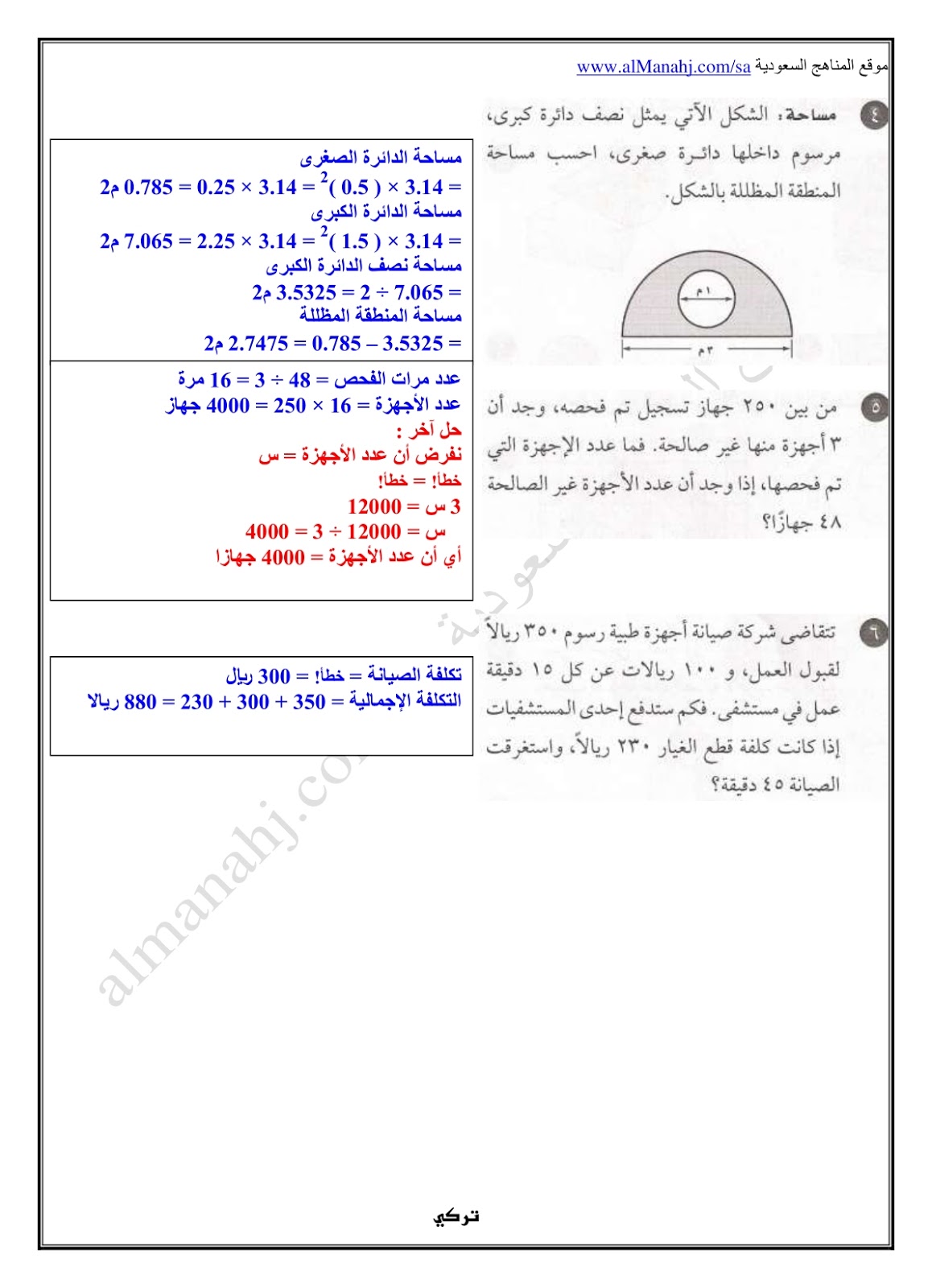 أنت هنا: موقع المناهجالمناهج السعودية الصف الأول المتوسط رياضيات الفصل الثاني حلول