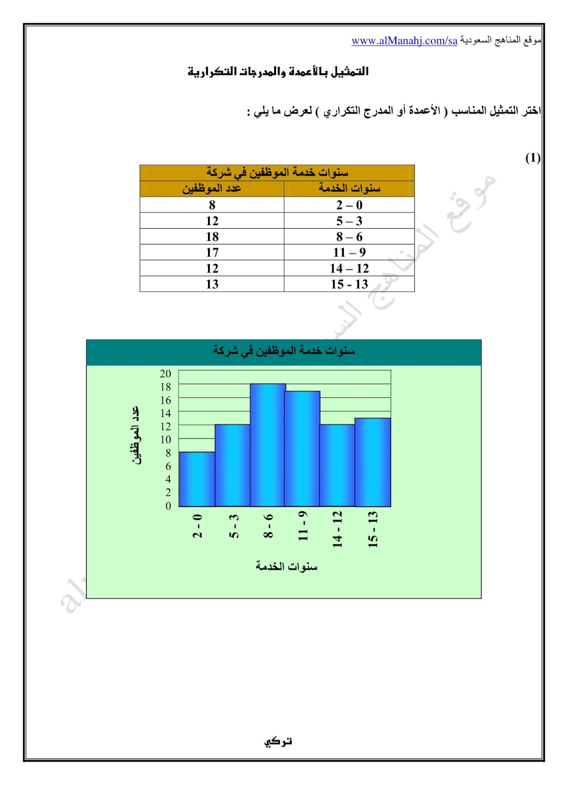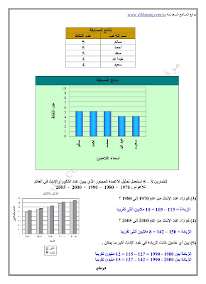 | حل كتاب النشاط لدرس التمثيل بالاعمدة و المدرجات التكرارية | ||