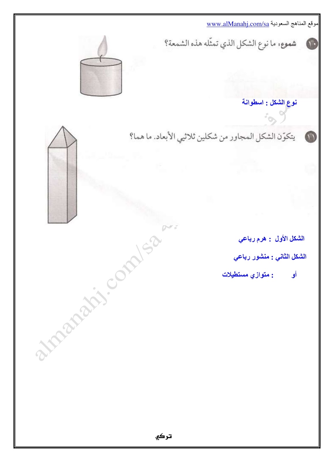 تم إيجاد الملف: حل كتاب النشاط لدرس الأشكال الثلاثية الأبعاد