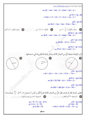 تم إيجاد الملف: حل كتاب النشاط لدرس محيط الدائرة