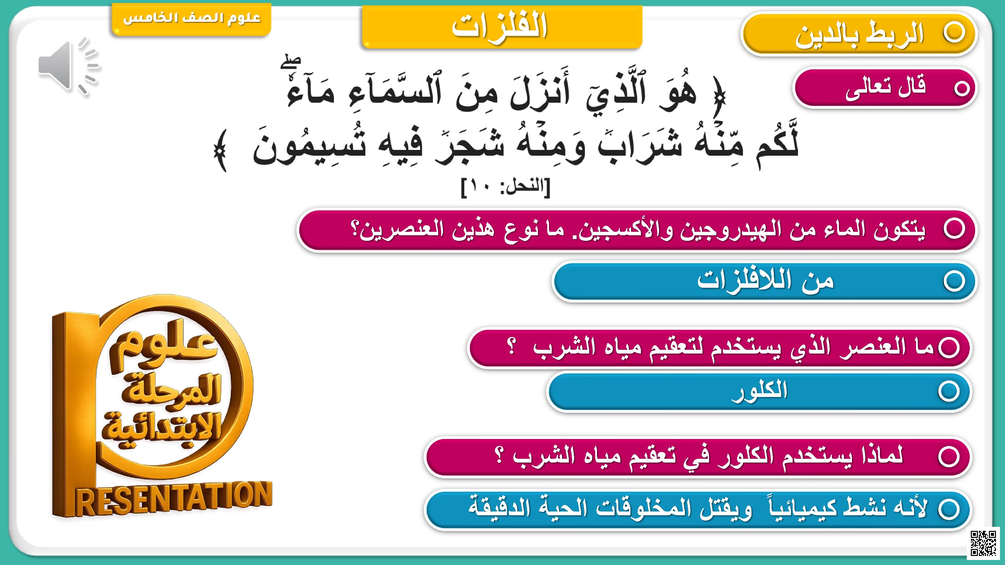 برزنتيشن الفلزات والربط بالدين والوطن والمواد الاخرى، وهو في مادة العلوم للصف الخامس الإبتدائي وفق المنهاج السعودي.