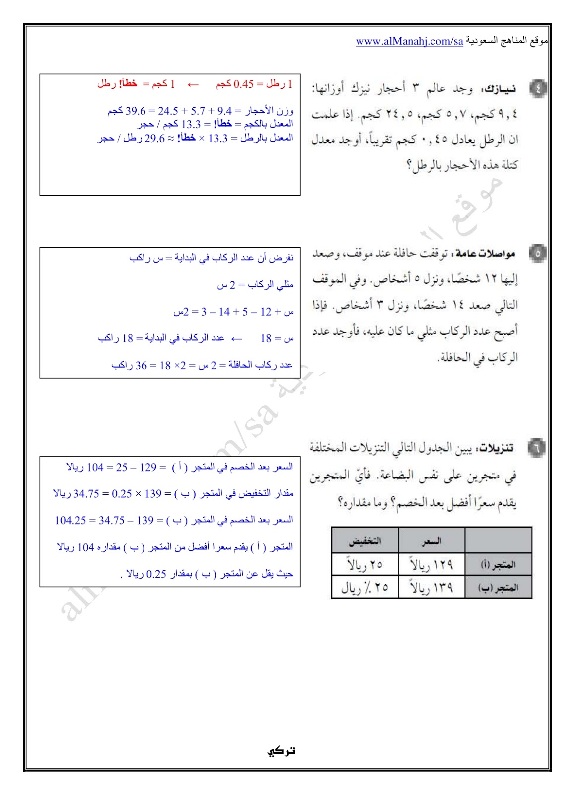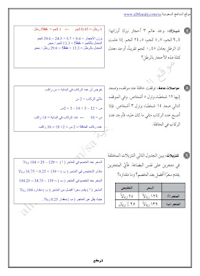 أنت هنا: موقع المناهجالمناهج السعودية الصف الأول المتوسط رياضيات الفصل الثاني حلول