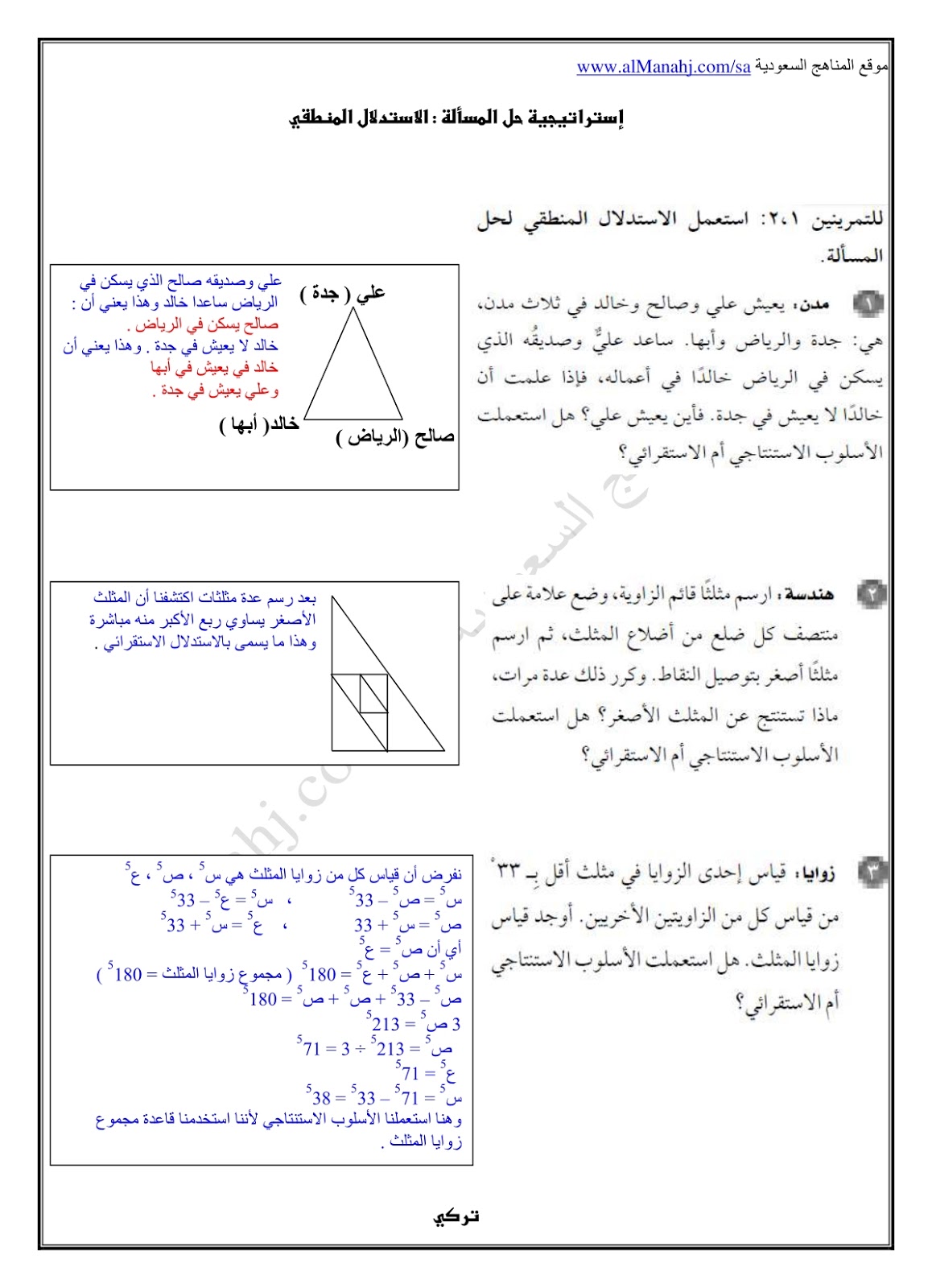 حل كتاب النشاط لدرس إستراتيجية حل المسألة : الاستدلال المنطقي في  مادة الرياضيات للصف الأول المتوسط وفق المنهج السعودي
