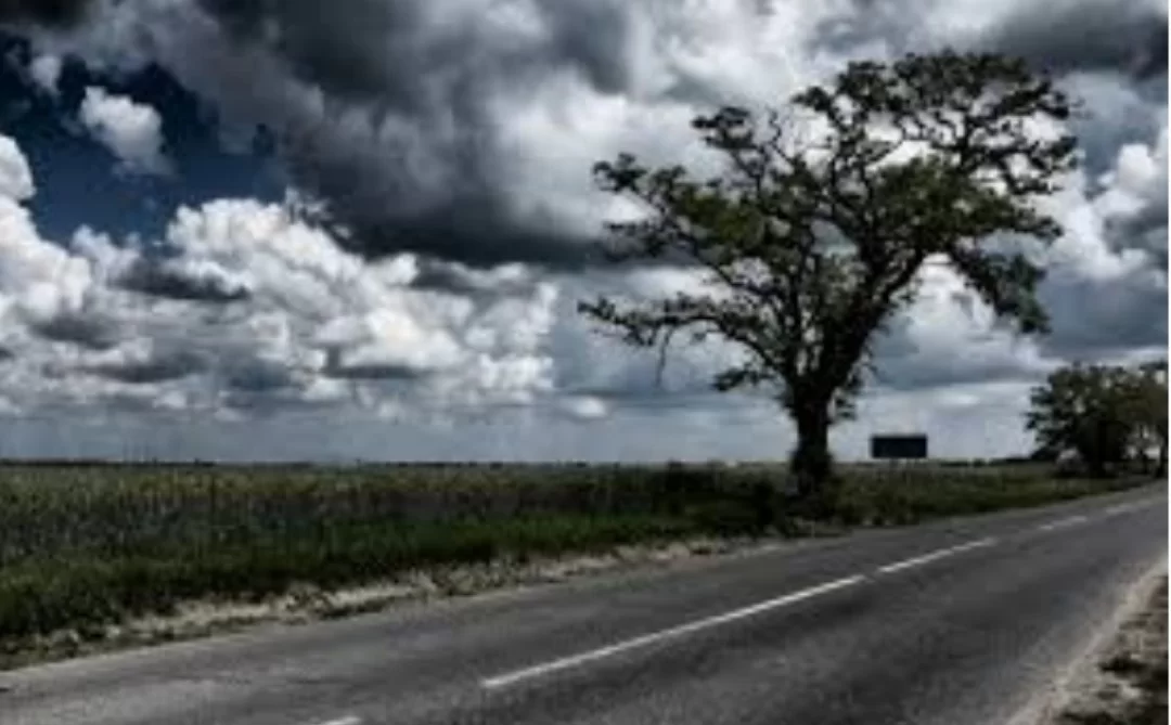 The sky in the image is filled with grey clouds, which means it is cloudy weather.