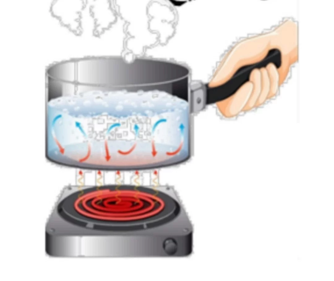 عند ملامسة اليد لمقبض الوعاء الساخن، تنتقل الطاقة الحرارية مباشرة عبر المادة الصلبة، وهي عملية تُعرف بالتوصيل الحراري.