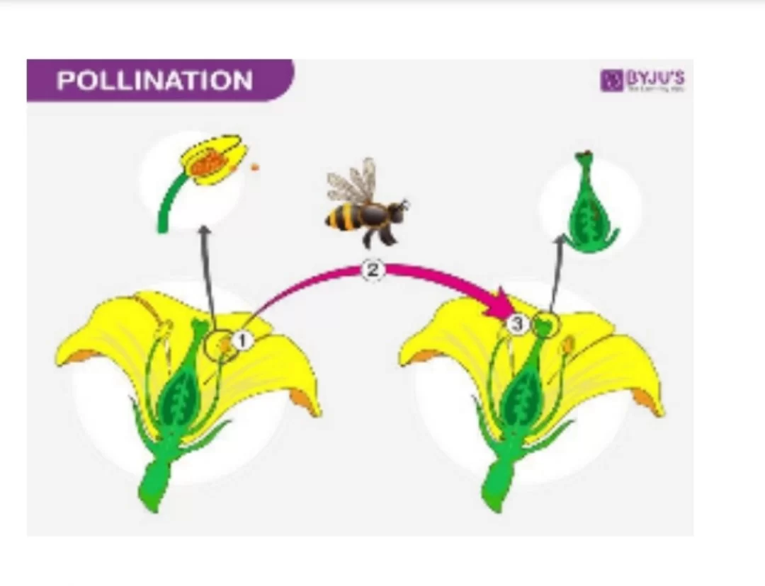 يوضح الشكل انتقال حبوب اللقاح من متك زهرة في نبات إلى ميسم زهرة في نبات آخر، وهذا يسمى التلقيح الخلطي.
