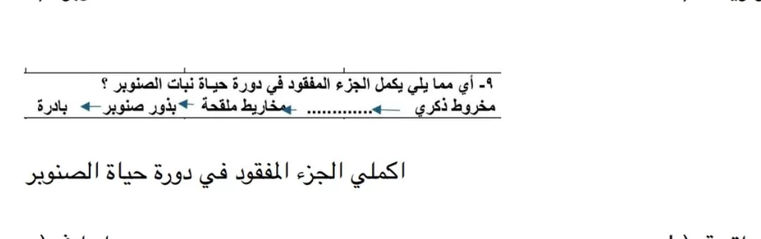 أكملي الجزء المفقود في دورة حياة الصنوبر: