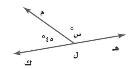الزاويتان متجاورتان على خط مستقيم، بالتالي فهما متكاملتان ومجموعهما \(180^{\circ}\). قياس الزاوية س هو: \(180 - 45 = 135\).