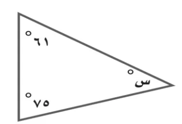 مجموع زوايا المثلث الداخلية هو \(180^{\circ}\). الزاوية المجهولة س تساوي: \(180 - (61 + 75) = 180 - 136 = 44\).