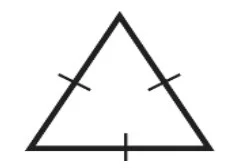تظهر الإشارات على المثلث تساوي جميع أضلاعه، وبما أنه متطابق الأضلاع فإن جميع زواياه متساوية وقياس كل منها \(60^{\circ}\)، وهي زوايا حادة.