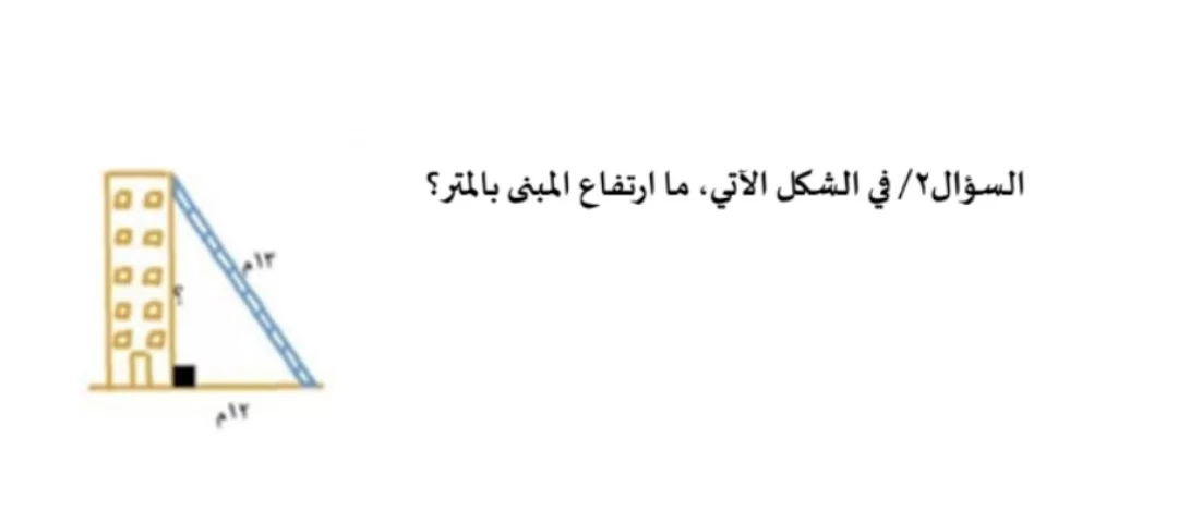 في الشكل الآتي، ما ارتفاع المبنى بالمتر؟