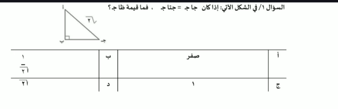 في الشكل الآتي: إذا كان جا جـ = جتا جـ ، فما قيمة ظا جـ؟