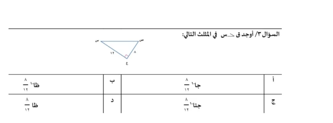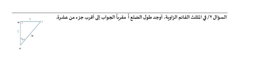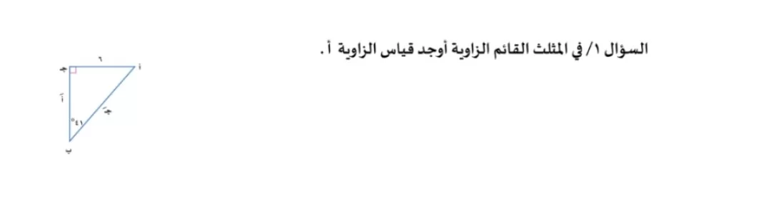 في المثلث القائم الزاوية أوجد قياس الزاوية أ: