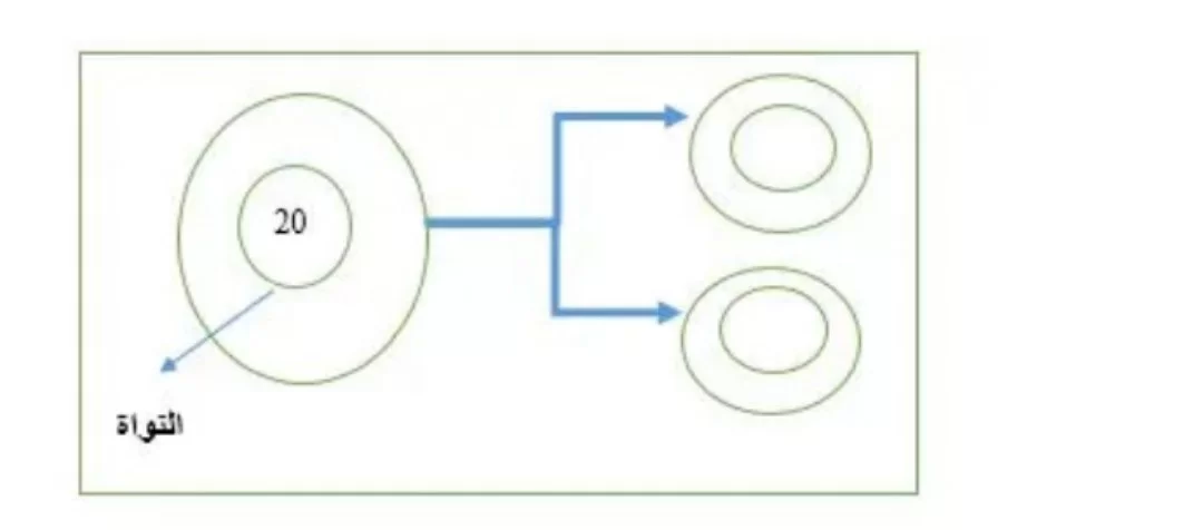 في الانقسام المتساوي الموضح بالشكل، تحتفظ الخلايا الناتجة بنفس عدد الكروموسومات الموجود في الخلية الأصلية، وهو 20 كروموسوماً.
