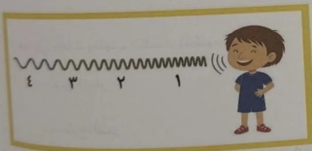التردد الموجي يكون أقل ما يمكن عندما يكون الطول الموجي (المسافة بين قمتين متتاليتين) أكبر ما يمكن، وهو ما يظهر عند الرقم 1 في الشكل.