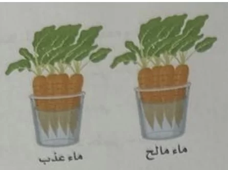بسبب الخاصية الأسموزية، يخرج الماء من خلايا الجزر إلى الوسط الخارجي (الماء المالح) ذو التركيز الأعلى من الأملاح، مما يؤدي لذبول الجزر.