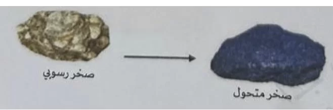 تتحول الصخور الرسوبية إلى صخور متحولة نتيجة تعرضها لظروف قاسية من الحرارة العالية والضغط الشديد في باطن الأرض دون أن تنصهر.