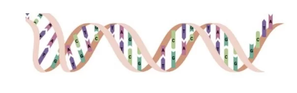 يظهر في الشكل هيكل اللولب المزدوج المميز للحمض النووي الريبوزي منقوص الأكسجين DNA.