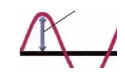 السهم يشير إلى أقصى إزاحة للموجة عن مستوى سكونها، وهي ما يعرف بسعة الموجة.